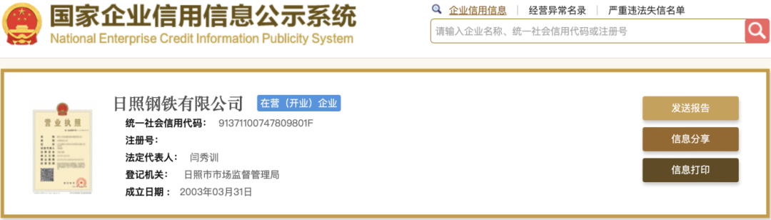 据国家企业信用信息公示系统显示,2025年4月29日,日照钢铁有限公司发生高级管理人员备案变更,傅胜刚(董事)退出,新增龙瀚涛(董事)。